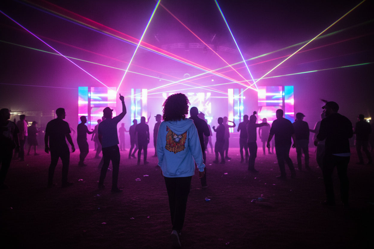 The Junglist Zip Hoodie is built for those who live and breathe underground culture. Inspired by the raw energy of 90s drum and bass, this zip-up hoodie blends sound-system heritage with modern streetwear construction.